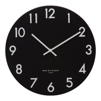 Shop online at One Six Eight LondonThe Jackson wall clock showcases neat simplicity and an on-trend minimalist vibe, alongside distinctive Art Deco influences. Constructed from pressed metal and enhanced with boldness, it has a contemporary elegance that will upgrade any interior in a chic way. It is sophisticated with a subtle glamour - a versatile piece and a modern classic. Although created with current interior trends in mind, this design will never go out of style. Available in 30cm,40cm and 60cm sizes Available in black dial with bold white numbers . High-quality silent quartz movement Industry-leading 5-year manufacturer's warranty Designed in the UK by One Six Eight London