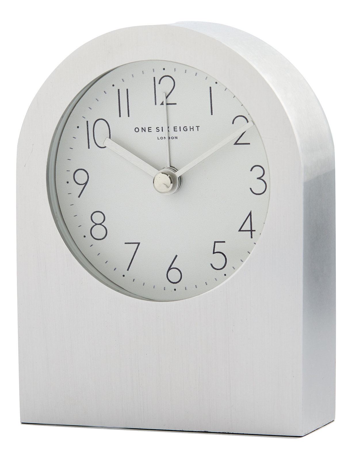 Shop online at One Six Eight LondonThe classic yet contemporary styling of the Bella alarm clock makes it perfectly versatile. Neat and elegant, it is characterised by a traditional arch shape and simple face with clear digits. The graceful curvature of form and minimalist look effortlessly complement one another, creating an unfussy yet eye-catching piece. With its timeless design and softly shimmering finish, it suits every room style from classical to ultra-modern.