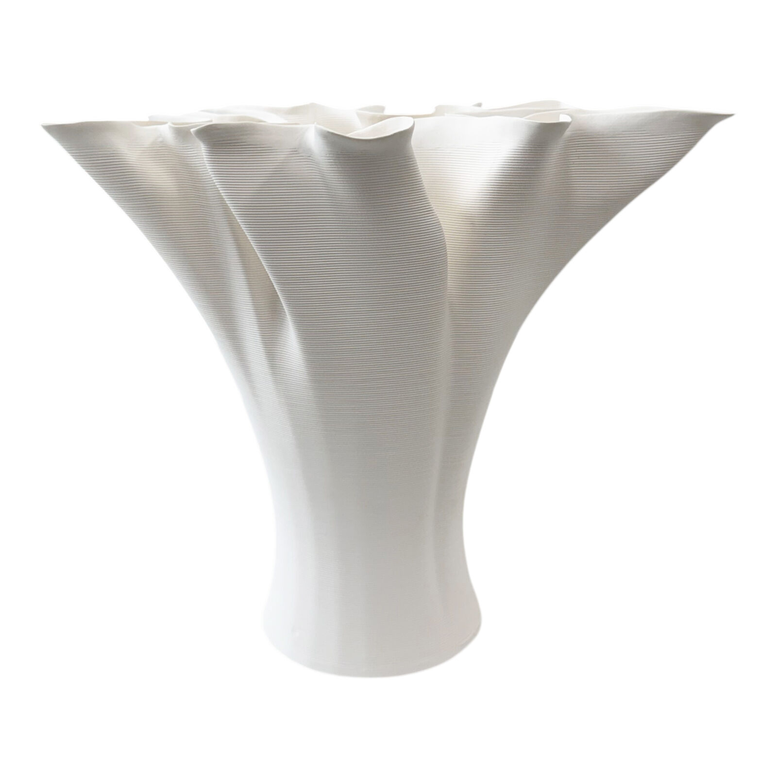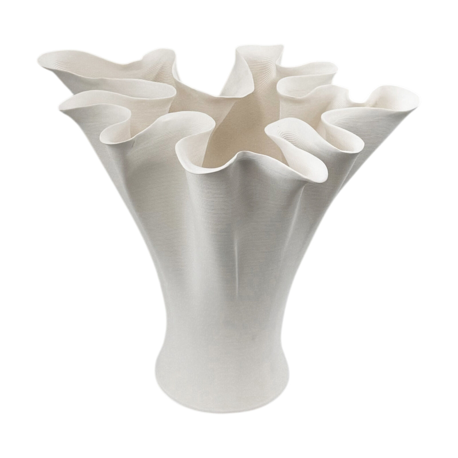 A sculptural statement vase with a flared, ruffled rim and refined matte finish — designed to add soft organic movement and modern elegance to your space.