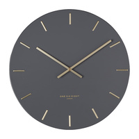 Shop online at One Six Eight LondonThe Luca wall clock showcases neat simplicity and an on-trend minimalist vibe, alongside distinctive Art Deco influences. Constructed from pressed metal and enhanced with luxe metallic details, it has a contemporary elegance that will upgrade any interior in a chic way. It is sophisticated with a subtle glamour - a versatile piece and a modern classic. Although created with current interior trends in mind, this design will never go out of style. Available in 40cm and 60cm sizes Available in Charcoal and White Open dial with embossed markers High-quality silent quartz movement Industry-leading 5-year manufacturer's warranty Designed in the UK by One Six Eight London