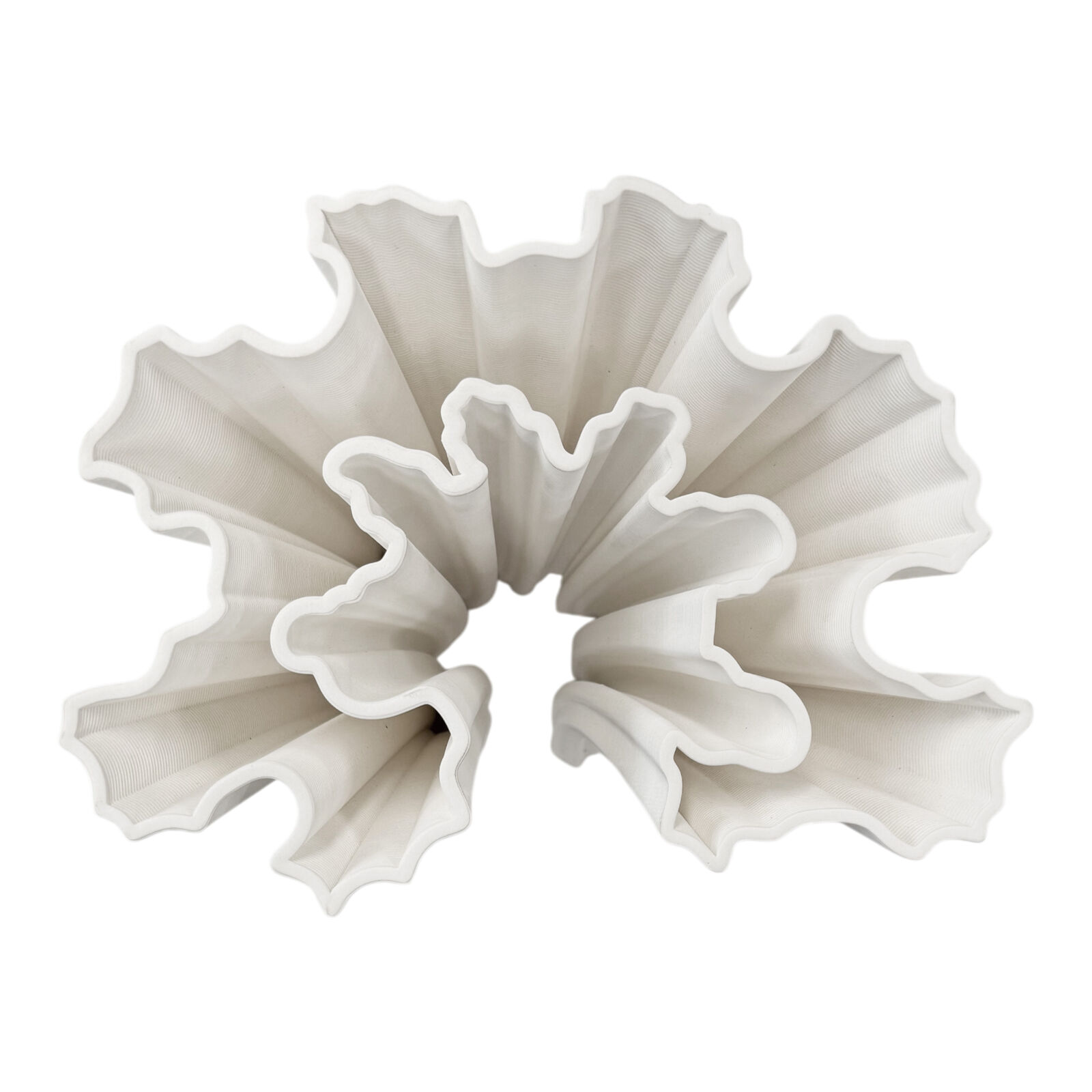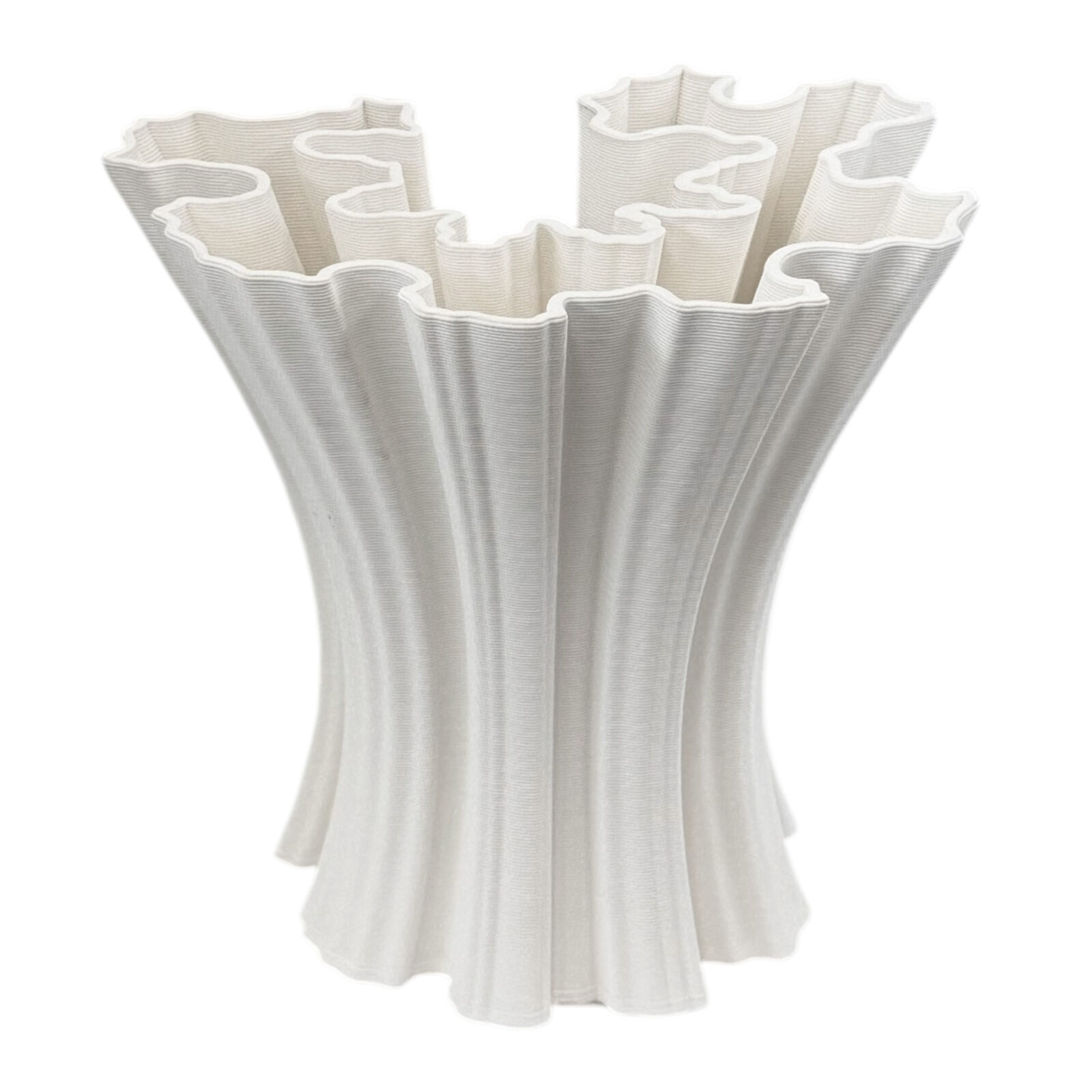 A sculptural statement vase with flowing, architectural curves — crafted using advanced 3D-printing technology to bring modern texture and form to your space.